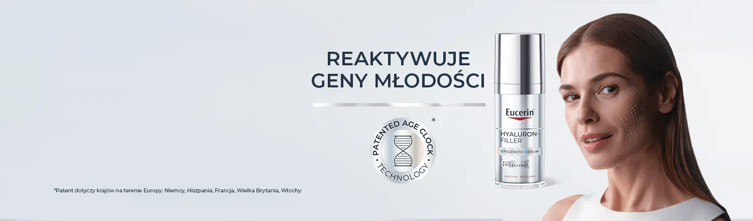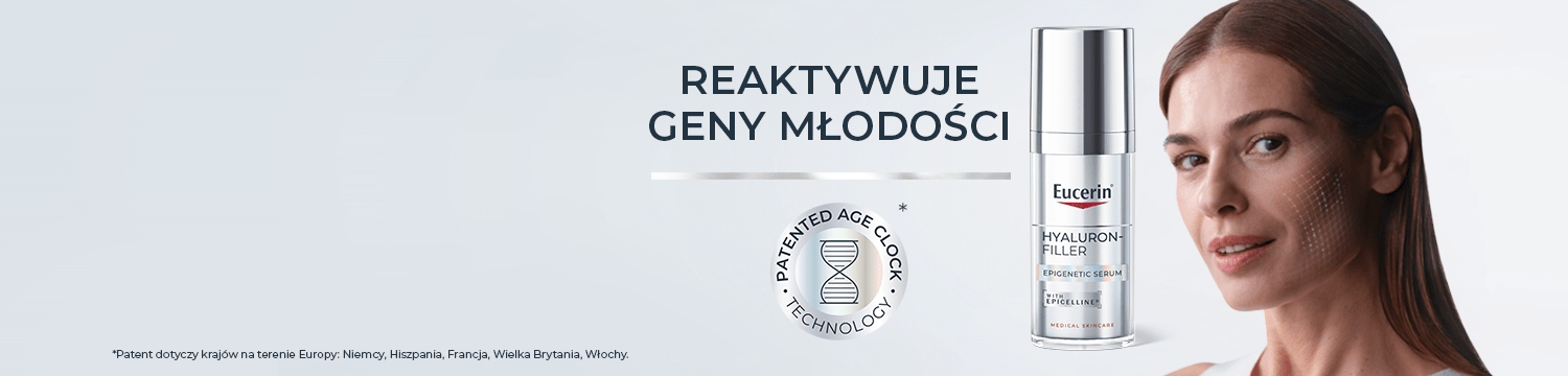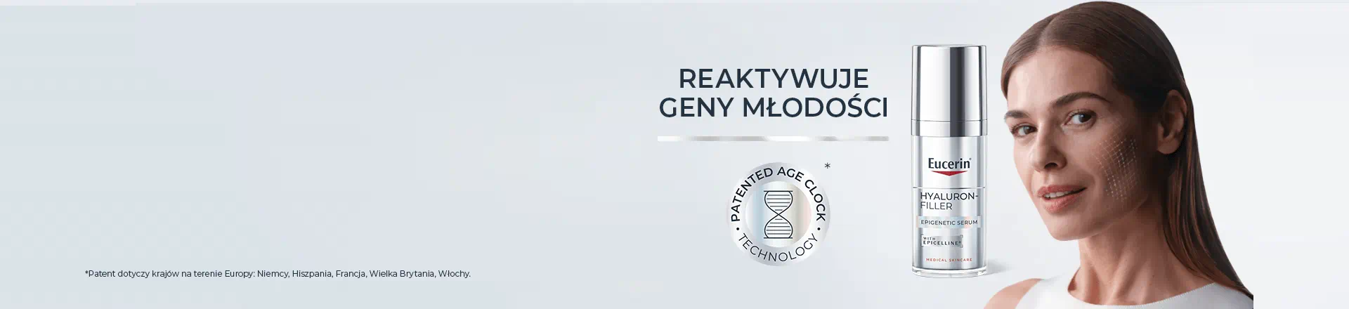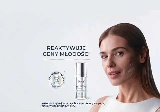 Krem Eucerin Hyaluron-Filler to jeden z hitów z tej serii. Krem na dzień jest przecież niezbędnym elementem w kosmetyczce każdej kobiety, tym samym, jednym z najważniejszych w codziennej rutynie pielęgnacyjnej. Dlaczego jednak właśnie krem Eucerin Hyaluron Filler będzie odpowiedni dla Ciebie? Przede wszystkim jest to krem na zmarszczki działający kompleksowo, wspierający skórę na wielu płaszczyznach. Krem z Hialuronem to przecież nie wszystko, co możesz dla siebie zrobić. Eucerin Hyaluron-Filler zapewnia Ci potrójne działanie – razem z działaniem antyoksydacyjnym i ochroną przed degradacją naturalnego kwasu hialuronowego. Według naszego testu przeprowadzonego z udziałem 120 kobiet, krem Hyaluron Filler widocznie redukuje zmarszczki, które są największą bolączką kobiet ze skórą dojrzałą. Aż 99% uczestniczek badania to potwierdza! Jednak dzięki potrójnemu efektowi działa skutecznie nie tylko na istniejące już zmarszczki. Zapobiega również powstawaniu kolejnych zmarszczek. Twoja skóra może wyglądać młodziej, bardziej promiennie, a wszystko dzięki składnikom aktywnym, które wypełniają zmarszczki, aktywują produkcję kwasu hialuronowego i chronią przed jego degradacją w skórze. Jeśli chcesz osiągnąć jeszcze bardziej spektakularny efekt, do swojej codziennej pielęgnacji dołącz również krem na kurze łapki, czyli krem pod oczy Eucerin Hyaluron-Filler. Eucerin pod oczy pomoże ci ujędrnić skórę pod oczami i nadać jej młodzieńczego blasku. Do rutyny możesz dołączyć także krem na noc przeciwzmarszczkowy i skoncentrowane serum odmładzające. Działaj stanowczo, by zobaczyć konkretne efekty!
