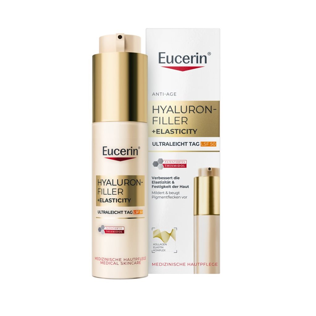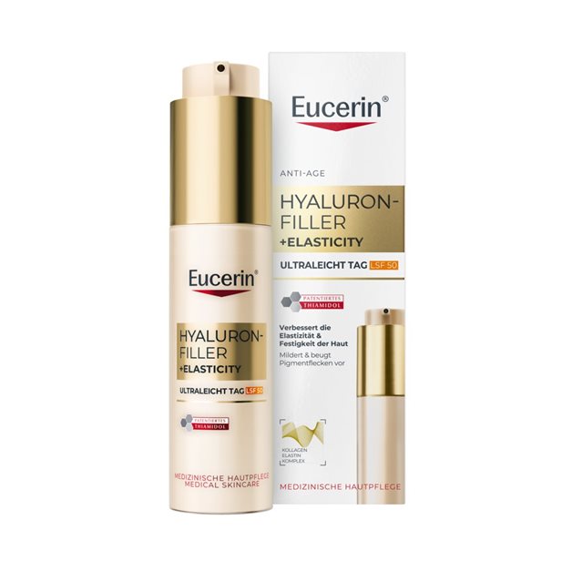 Linia Eucerin Hyaluron-Filler + Elasticity została opracowana specjalnie dla skóry dojrzałej oraz dla osób, których głównym problemem jest brak elastyczności skóry i głębokie zmarszczki. Chociaż wygląd i kondycja skóry są sprawą indywidualną, a skóra starzeje się w różny sposób w zależności od czynników genetycznych i stylu życia, to problem starzejacej sie skóry zwykle zaczyna pojawiać się po 50 roku życia. Produkty z tej linii uzupełniają swoje działanie, wypełniając głębokie zmarszczki i poprawiając elastyczność skóry. Efektem ich stosowania jest poprawa kondycji skóry, Skóra staje się jędrna, świeża i promienna