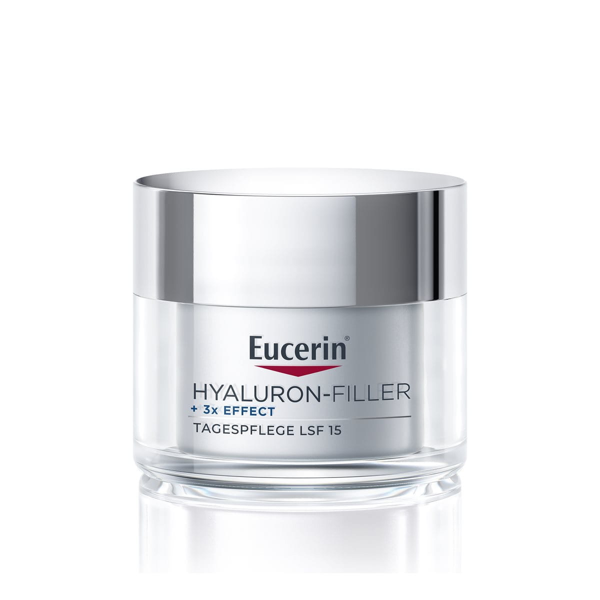 Wraz z wiekiem poziom naturalnego kwasu hialuronowego w skórze spada, co prowadzi do utraty wilgoci, powstawania drobnych linii i głębokich zmarszczek. Eucerin Hyaluron-Filler +3x Effect Krem na dzień SPF 15 został stworzony, aby przeciwdziałać tym oznakom starzenia dzięki starannie dobranej mieszance krótko- i długołańcuchowego Kwasu Hialuronowego, Saponiny Glicynowej oraz Enoksolonu.