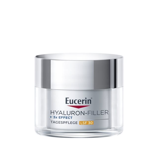 Linia Eucerin Hyaluron-Filler +3x Effect została opracowana specjalnie, aby przeciwdziałać wczesnym oznakom starzenia, takim jak drobne linie i zmarszczki, które zwykle pojawiają się po 30. roku życia pod wpływem czynników genetycznych i stylu życia. Eucerin Hyaluron-Filler +3x Effect Krem na dzień SPF 30 łączy w sobie krótko- i długołańcuchowy Kwas Hialuronowy, aby widocznie wypełnić zmarszczki i intensywnie nawilżyć suchą skórę, jednocześnie utrzymując długotrwałe nawilżenie.