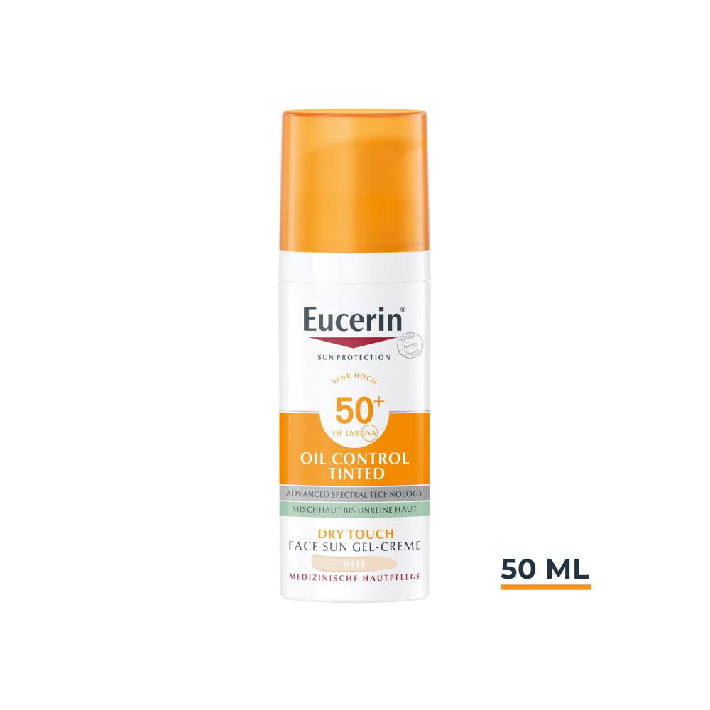 Światło UV jest główną przyczyną uszkodzeń skóry wywołanych słońcem, ale wysokoenergetyczne światło widzialne (HEVIS) może również spowodować pojawienie się nadmiernych ilości wolnych rodników, co wywołuje tzw stres oksydacyjny i uszkodzenie komórek skóry.Eucerin Oil Control SPF 50+ żel-krem ochronny barwiący to krem ochronny, przeznaczony do skóry tłustej i trądzikowej. Zaawansowana technologia spektralna łączy szerokopasmowe i fotostabilne filtry UVA i UVB zapewniające wysoką ochronę przed promieniowaniem UV z likochalkonem A, aby neutralizować wolne rodniki generowane promieniowaniem UV i wysokoenergetycznym światłem widzialnym (HEVIS). Krem zawiera również kwas glicyretynowy, który wspiera mechanizm naprawy DNA skóry.Barwiące pigmenty zapewniają bardziej równomierny i jednolity odcień skóry. Technologia Oil Control z L-karnityną i pigmentami pochłaniającymi lipidy zapewnia skórze natychmiastowy efekt suchego wykończenie i na długo zapobiega błyszczeniu się, nawet do 12 godzin.Eucerin Oil Control SPF 50+ żel-krem ochronny barwiący jest nieperfumowany i ma ultralekką, nietłustą konsystencję. Badania kliniczne i testy dermatologiczne potwierdzają, że jest dobrze tolerowany przez skórę wrażliwą i trądzikową.